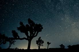 Huge Joshua trees loomed up in the car's headlights like weird, grotesque monsters. A coyote scurried across the sand in the distant beam of the car's lights.
