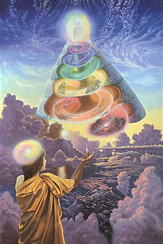 "There was a complete change in religious concepts.  There is now an overall universal knowledge.  Many of the old, localized concepts that separated people on earth broke down —then the helpers had to come in from other dimensions. People realized why the Christ, the highly evolved being, had stepped into history many years before.  The purpose was to show the true nature of man.