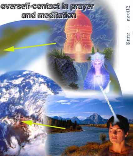 Through MEDITATION and conscious, concentrated prayer - a connection to the soul or the overself is made/etablished. The overself collects the experiences the external person makes in the different incarnations through the "cosmic schoolclasses". This overself is on a higher level where pain cannot be experienced. Thats why it has to "create" - through a pair of parents - a body in this heavy material, in the purpose of  gathering experiences in "suffering". Those is - seen from the higher levels - necessary in the process of perceiving. The more one uses this "channel" to the overself - the more it will be strengthen and developed. NOTE: IT IS THE OVERSELF THAT MEETS YOU IN THE END OF THE LIGHT-TUNNEL, AS IT IS DESCRIBED IN THE MANY NEAR-DEATH-EXPERIENCES OF TODAY.