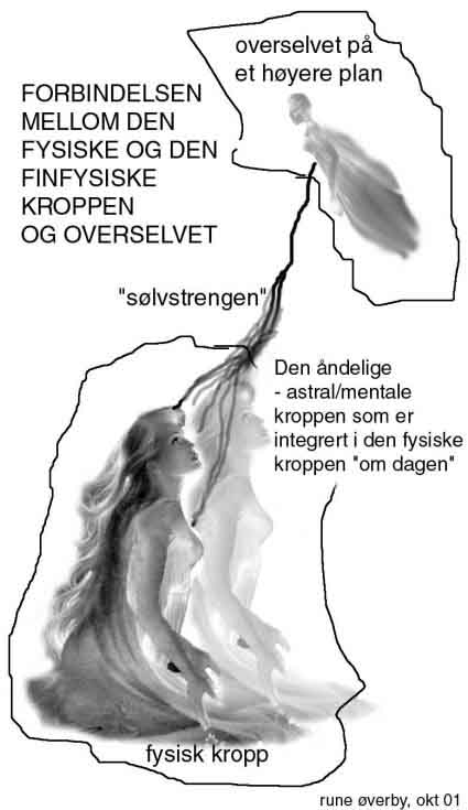 det er gjennom den eteriske "livlinjen" kalt SØLVSTRENGEN at overjeget sender livskraft eller besjeler kroppen. Når denne sølvsnoren brister ved døden så etterlates kroppen som "et flatt batteri" - uten strøm. Det er altså sjelen/overjeget som "elektrifiserer" kroppen med "liv". Dette liv er den eterisk-astrale kroppens nærvær i den fysiske kroppen.