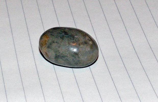 En av de stenar som Ante tagit med sig till jorden. Stenen är mystiskt genomskinlig på ena sidan, och ändrar mönster då och då, trots att materialet är hårt på ytan. Stenen blir plötsligt varm. (en liknende sten fikk den norske kontaktpersonen 'Reidar' med seg hjem - også denne var meget merkelig og ekstremt lett, enda den virket å være meget hård, og denne sten hadde en viss evne til å lyse, hvilket flere fikk oppleve på en av 'ufo-prate-kveldene på Lørenfallet'. rø-kommentar + link)