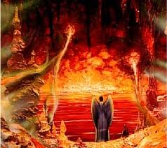 Vi nærmet oss noe, som så ut som en stor mur av røk og ild. Jeg bemerket til min ledsager, at den så merkverdig materiell ut. Jeg var ganske vist vant til, at våre omgivelser i åndeverdenen var meget reelle og solide, selv om de dødelige tror at de er meget eteriske, ettersom de ikke kan sees med jordiske øyne; men disse tykke røkskyer, disse slikkende ildtunger svarte ikke til min forestilling om helvete. På mine tidligere vandringer hadde jeg ganske vist sett mange dystre huler og ulykkelige ånder, men jeg hadde ikke sett ild eller flammer av noen slags, og jeg har aldri trodd på materielle helvetesflammer. Jeg anså legenden om "helvetes ild" som en billedlig tilstand for de ulykkelige bakenfor død og grav. Det er også mange som har sagt, at her er lidelsene sjelelige og subjektive, men på ingen måte objektive. Jeg ytret noe om det til min ledsager, og han svarte: