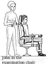 John on the examination chair, with Serkilias