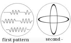 After a minute or so of the wave patterns, the display changed abruptly. Two narrow ellipses, bright yellow lines on an intense black field, and crossing at right angles, pulsated
