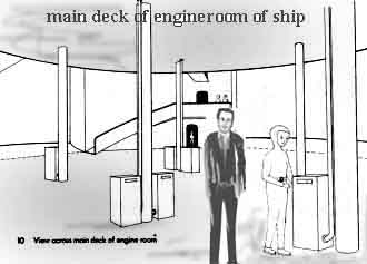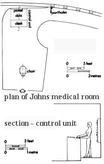 WHEN THE FAMILY separated after the speech of welcome on the balcony, John was taken along a short corridor to an examination room, similar in functional arrangement to the room Frances was taken to, but different in shape and detail. The officer who accompanied him was the same one who later showed John round the ship, and is almost certainly the one who made the welcoming speech.