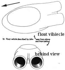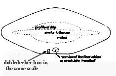 CHAPTER NINE Pictures in the Navigating Screen To REACH THE navigation centre, Anouxia took John once more to the elevator; this time they floated upwards for some distance, then emerged into a large room set about with banks of complex instruments on the walls and on control desks around the periphery of the room. The centre of the room was occupied by a big horseshoe-shaped desk, about three feet high - 0,9m- and about two feet six inches-0,75m- wide; the inside diameter of the horseshoe was about nine feet-2,8m. A chair was fixed in the centre of the concave side, and another opposite to it; other chairs were provided for other parts of the great table. Some of these other chairs were occupied by silver-clad persons. Anouxia went to the chair in the centre of the concave side, and indicated that John should sit opposite to him. The desk surface was divided into two equal contrasting zones: to Anouxia's right hand, the entire surface of the desk was crammed with instruments, knobs, switches and little coloured lights; John said it was so crowded, you could hardly have got another one in: to his left hand, the desk surface was black, smooth, bare and featureless (uten særpreg). Indicating the desk, and the room as a whole, Anouxia said: "This is for navigation". (I note with some satisfaction that the Janos people do not use made-up 'space' words, such as 'astrogation', beloved of some science fiction writers; when speaking English, and presumably translating from their own idiom, their terminology is derived mainly from the language of the sea. The very craft in which they live and travel is, to them, a 'ship' - much less frequently, a 'spaceship'. When Anouxia first welcomed our family aboard, he said: "Welcome to our ship". Nothing more clearly indicates the original maritime nature of the Janos people; we had many occasions to note their passion for anything to do with water and with craft that sail on water. A flying saucer is, to its makers and crew, a ship, not an aeroplane.) John, unfortunately, has never quite recovered his full, detailed memory of sound, including speech, during this part of the incident; though he did eventually, after some hard work and persistence on the part of the hypnotist, recover enough speech-memory to get the main substance of the story, with some important verbatim passages. This may be partly why one tends to get the impression that Anouxia's English speech is less fluent (flytende) and less idiomatic than that of Uxiaulia; though it would be reasonable to expect some individual variation in aptitude for languages. John therefore missed quite a lot of the sound-track, as it were, of this first section, in which Anouxia tried to explain to him the operation of the complex control system. Anouxia kept on pressing buttons and turning knobs; and little coloured lights would light up: but without the speech, John does not really know what it was all about. It seems, moreover, that he did not understand at the time, that is not merely that he does not remember understanding; for there were other passages in which he knows that he heard and understood at the time, but does not yet remember what was said. John does remember that Anouxia, on this occasion, realised that he was not taking it in, and repeated the whole demonstration. It should be remembered that John, while an intelligent man and skilled in his occupation(yrke), does not have the specialised training which might have made some sense of the button-pressing; without it, and without most of the speech-memory of this part of the incident, a full understanding is hardly to be expected. I suspect that his difficulty in remembering speech in this highly technical section is caused by his lack of understanding. It may be, too, that scientific principles were involved which would be unfamiliar, even to a scientist; though in general, we find that we are able to understand the basic science behind what the Janos people are able to do: where we cannot follow is in their technology; how they do it. When it comes to their apparently complete control of gravitation and inertial mass, we cannot even follow the basic science. John does remember, at this point, that he asked Anouxia: "Where do you come from?" - and Anouxia answered: "I will show you". They moved over to the blank half of the navigating table, and at once a large rectangular area within the smooth table-top lit up as a screen; there was room for a second screen beyond it, John says. At first he could see nothing but a uniform blue background, which gradually darkened as various planets began to appear on it. At first he saw what he called under hypnosis "a large round like a ball, with curved ridges on it. Like mountain ranges on it. About six inches -15cm-across. Brown with a golden tinge (skjær) to it". (By "six inches across" he means the actual size of the image, on a screen of about 42 by 27 inches -107x69cm.) Next he saw a picture of the Earth from space; he recognised the shape of Africa, and Anouxia said the word "Earth". An oddity (særhet) of the pictures of planets which he saw in the screen, is that they show no cloud-pattern, even where one is present at all times; one could not photograph Earth from space without recording the characteristic delicate fleecy veil of white clouds; and Janos, seen later, likewise had no clouds: it may be that the photo-technology employed was such that it did not show clouds, so that the planetary surface was sharp and clear; this would be an advantage in their accustomed task of planet survey. John is convinced that it really was the Earth, and not a model. The picture of the Earth was followed by one of the Moon with its characteristic markings and craters, which he knew from pictures in books. Next, a brown planet with markings on it, which he did not know, but from his description it could have been Mars. Then a whole series of planets of many kinds, mostly golden-brown in colour where the sun