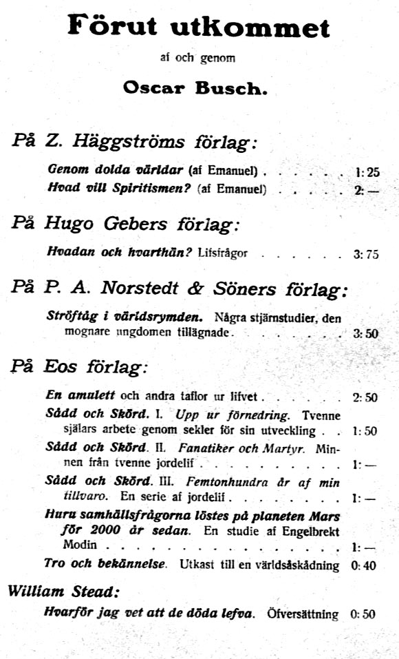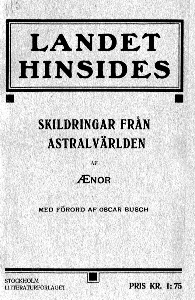 LANDET HINSIDES SKILDRINGAR FRÅN ASTRALVÄRLDEN AF "ÆNOR" link til pdf -utg.av denne med "modernisert språk" | this book engl.translated link | ljud/audiobok mp3 AF ÆNOR MED FÖRORD AF OSCAR BUSCH | STOCKHOLM LITTERATURFÖRLAGET 1910 | O.L. SVANBÄCKS BOKTRYCKERI |