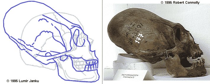 Flere kilder beskriver " gudemennesker" fra rommet med slike merkelige hoder(visse faraoer) - men slike funn passer ikke inn i den darwinistiske utviklingsmodell, og de blir derav uten forklaring av den tradisjonelle vitenskap.