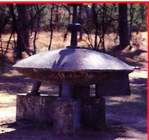 Truly, it was something very unusual. In front of Oleg, there stood a huge disc-shaped object, approximately 120–140 feet (40-45m) in diameter, with a dome-shaped top, on which no other structures were visible. Along the perimeter of the disc, there were some dark holes evident, which Oleg at first thought were portholes. Extending from the lower part of the object, there were two structures visible, which seemed to support the ship. The far edge of the disc was slightly elevated, and was resting on some birch trees, two of which were broken. The object looked dark and uninhabited and there were no traces visible of windows, doors or hatches.