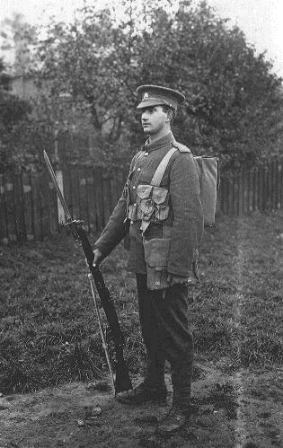 "Det var i august 1914. Jeg var lige fyldt atten år, da krigen brød ud. Som de fleste unge mennesker var jeg ivrig efter at gå ind i hæren, og jeg var så heldig at blive godkendt - eller det mente jeg i hvert fald på dét tidspunkt. Jeg havde ingen anelse om, at jeg ikke ville komme hjem igen.