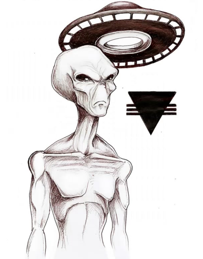 Maytra (pl. Matrei), or Maitre, originate from two home planets in the nearest galaxy of Andromeda, that they name Megopei. They are your worst enemy, and the worst enemy of all races in this galaxy. Basically, they are considered as parasites by everyone except by those who managed to create alliances of mutual interests with them, that is to say: The Ciakahrr (Draco) Empire and the Orion collectives. Of the same average height as humans, this race of hermaphrodites with long shaped face, elongated skull and long slim neck, carries indeed a very mean looking. We think their lifespan is of usually 120 (T) years. Their motivation is rage, hate and assimilation. Their ships are large, dark and discoidal with a circular row of lights plus a large aperture underneath, and their in-signia is a black inverted triangle on 3 lines and a red background. They have been visiting your planet since before the two last glaciations and tried to colonize it at many occasions, but were always interfered by either the Ciakahrr (Draco), the Anunnaki, the Council of Five or the Galactic Federation of Worlds. Not stopping there, they colonized 26 other planets. Abductions of humans are carried out openly by them, either for their own interest (slave traffic to mines on Terra's moon and Mars, as wellasslave trade with other : species, primarily the Reptilians), or in coalition with the US-Telos Alliance.