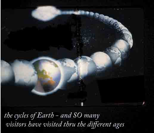 "These extraterrestrial helpers had been observing and working with us on many different levels of communication for centuries. They are the ones that I was privileged to have some brief encounters with in some earlier sessions. They were able to come in and work out a pattern of communication to give help and pointers on how the earth could be rejuvenated. People on the earth were ready, prepared for this breakthrough into a new stage of development.