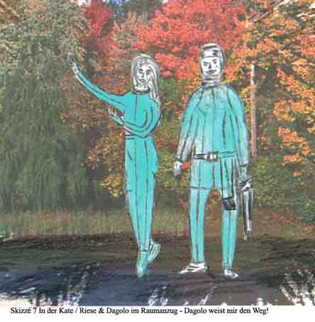 In the "restaurant" he also saw a couple of another race – quite small in comparison - women 1,2/man 1,5m. The man had no hair and looked some European, but the lady had more yellow skin and quite sensual. He understood that their home star was not so far from Dagolo’s homeworld. When they ate, they all had total silence.