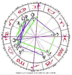 ![]() bildet over er kopiert fra astrologimuseum.dk som også har opptegnet hans horoskop se under: