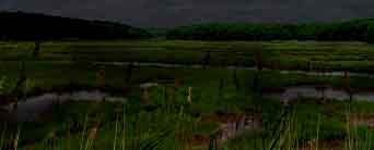 Det intense mørke og den fryktelige tykke tåke gjorde det nesten umulig for meg å se langt i noen retning, men vi nådde imidlertid myrlandet, uten at jeg viste hvordan vi var kommet dit. Den eneste forandring jeg merket da vi nærmet oss stedet, var en kald, klam motbydelig vind, som blåste oss i ansiktet. Deretter så jeg foran meg en stor sjø av flytende mudder, sort, råttent og stillestående med noe oljeaktig slamm flytende i overflaten. I dette veltet som seg noen uhyre krypdyr rundt; de hadde store utstående øyne. Store vampyraktige flaggermus med nesten menneskelige ansikter svevde over dem, mens en sortgrå damp steg opp fra den råtnende overflate og hang over den i spøkelsesaktige skikkelser, som skiftet og forandret seg hvert øyeblikk til nye forferdelige figurer, som rystet og svingte med armene, nikket med hodene - de syntes nesten å være utrustet med følelser og taleorganer - og de smeltet bort i tåker for igjen å danne nye redselsfulle skikkelser.