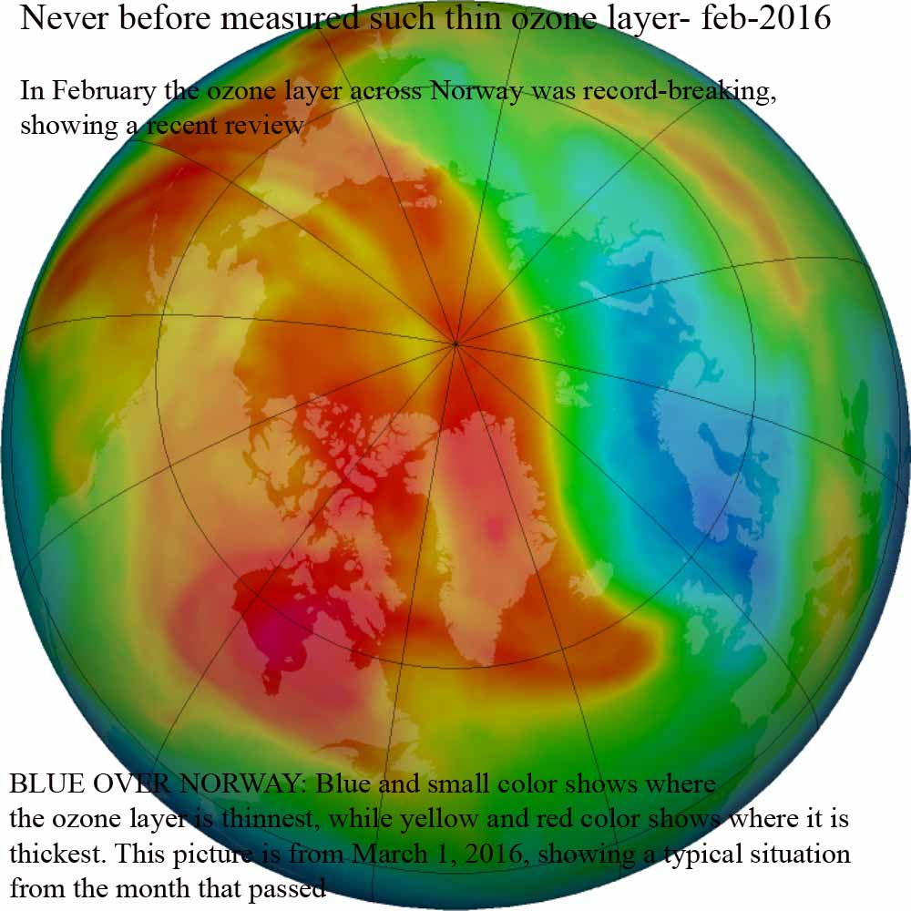 "Allerede er det skjedd en skade til 6,38 % nedbrytning. En prosentsats som begynner å bli skadelig og farlig for alle livsformer, og som kan fremkalle mutative forandringer. Denne prosentsats er nådd bare på 60 år. En økende mengde med ultrafiolette stråler fra solen trenger da inn i atmosfæren, og kan deretter skade alle livsformer. Over mange områder er dette ozonbelte allerede alvorlig angrepet og gir ikke lengere samme beskyttelse. På tre ulike steder er det allerede en risiko for at det brytes ned helt, innenfor noen få årtier, om ikke menneskene ikke stopper de ødeleggende prosesser.