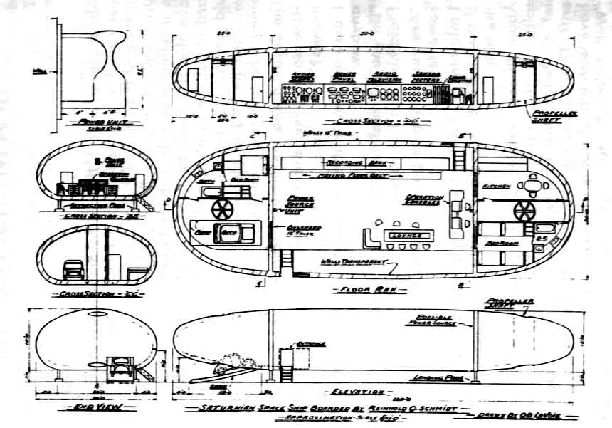 Rumskibet var delt i tre rum. Det i midten var størst, cirka sytten meter langt og ni meter bredt. Der var fire meter til loftet. I hver ende af fartøjet var der yderligere et rum, hvert anslået til en længde på syv meter - men her måtte Schmidt ikke komme ind. Skillevæggene kunne han ikke se igennem, i modsætning til ydervæggene.