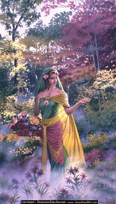 Excited and yet bewildered by his new found power, Eduard raced to a nearby tent where he discovers seven Arabian women washing clothes. He steps inside and they don't seem to notice him at all. Throwing caution to the wind he moves to one of the women and kisses her lightly on the lips. The women's eyes roll back in her head and she slowly slips off the bale of hay she was sitting on and slumps to the floor. The gentle laugh of Asket invades Eduard's head as he watches the woman slowly recover. As she excitedly tells the other women what happened, Eduard notices their disbelief so, he moves to each woman and kisses them each on the lips. One by one they slump to the floor, slowly regaining themselves. As Eduard notices them all talking to one another Asket informs him that she controlled their thoughts so they would all believe themselves to have been kissed by an angel and that their lives would now be for the better.