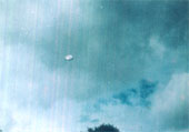 We were not much surprised when, from behind a hill -- that did not reach much more than 100 meters of height -- there slowly emerged a silver light that we at first took for the Moon It was exactly 9 P.M. and the light finished coming from it's hiding place, illuminating only the place where we were as if like day. It was approaching the group slowly, allowing us to appreciate its hamburger-shaped form. At both sides of that great metallic object, orange, blue and yellow lights pulsed on and off on what seemed like stabilizers, because little by little the ship was coming to a stop scarcely 80 meters above us.