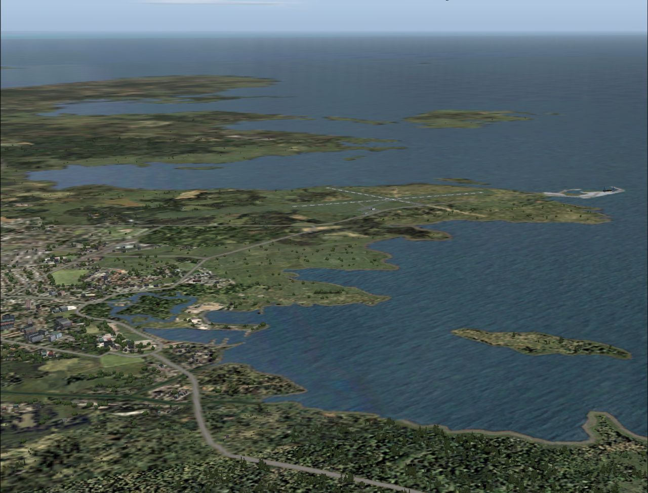 Aven piloterna hade ett fönster. bildet her er ikke spesifikt for å illustrere dette tilfellet Det hördes ett frasande ljud. Och sedan flög farkosten, först långsamt, långsammare än ett flygplan. Det hördes ett svagt surrande från motorn. Samtidigt fylldes kabinen med grå dimma.(sannsynligvis en "desinfiserings-gass"- for å fjerne jordiske bakterier,etc,, som vi også leser om i andre, slike kontakt-tilfeller.R.Ø.anm.) Virve började må dåligt. Hennes huvud sjönk ned. Men då steg ledaren upp och gick bakom henne, höll sina händer ovanför hennes axlar. Hennes blodcirkulation kom igång igen och hon kunde andas lättare. Hon mådde bättre. De flög just då ovanför byn Sandla. Innan farkosten startades hade en pilot på estniska (!) frågat ledarhumanoiden om de flög utan ljus eller med ljus. Han svarade: "Vi kom utan ljus och så återvänder vi också."' Medan rymdskeppet flög över byn ställde följeslagaren frågor om ett par byggnader. Snart var de över staden Kuressaare (bilde under)och dess flygfält. Byn Sandla, där Virve bor, ligger 23 kilometer från Kuressaare. Virve fick förklara att hon åkte buss till staden för att göra större inköp. Nu såg hon landsvägen mot Pihkla.