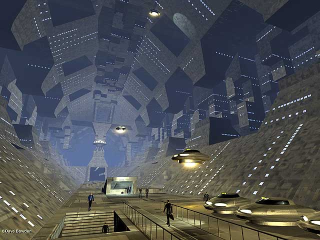 Først "brennes" ut et hull som er stort nok til å bevege farkosten inn i fjellet og deretter brenner man ut det man trenger i selve fjellet, før man smelter igjen og slik lukker åpningen. Inn og utgang til basen skjer via teleportering/dematerialisering av farkosten og mannskap med en teknikk som blir for omfattende å beskrive her. Disse baser anlegges da på punkter der det naturlig eller kunstig er skapt betingelser for prosessen - via et såkalt "6-punkts-senter".